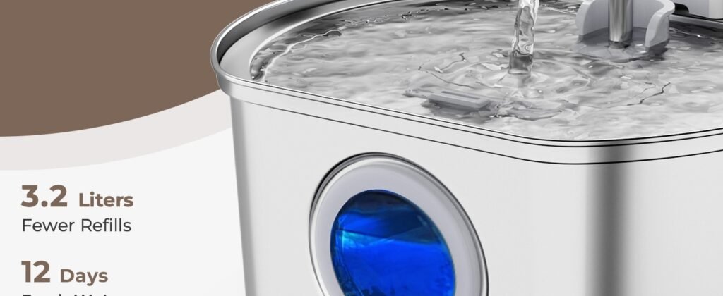 - 108 oz/3.2 L Capacity & Travel Convenience: With a generous capacity of 108 oz/3.2 L, stainless steel cat water fountain can keep your pets hydrated for up to 7 days, ensuring they always have access to fresh water, even in your absence. Spend more quality time with your furriends and worry less about refills! Travel with peace of mind knowing that your furry companion is well taken care of